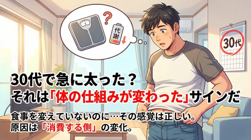 この記事では、30代で急に太り始める本当の理由を、感情論ではなくデータと仕組みで解説する。「楽して痩せる方法」は一切出てこない。でも「なぜ太ったのか」「何をすれば変わるのか」は、読み終わった頃に確実にわかる。
